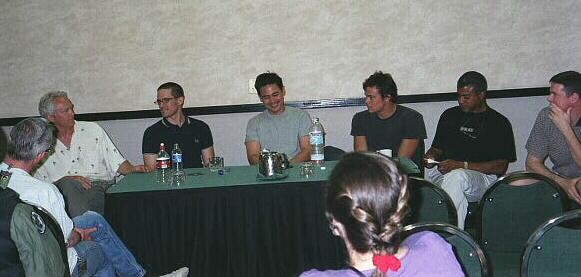 Sunday came and passed in a haze. I was still on cloud nine from Saturday! We talked to various fans, coerced Kristian Sorensen into signing a ‘PREY’ petition to send to Warner Brothers, and generally hung out. We packed things out about 1600 and retreated to the PREY Meeting suite for a wrap up discussion. AgamemCon is dead, and we need to find a new location for next year. There was a great deal of enthusiasm about trying WorldCon in San Jose in 2002. It’s over Labor Day weekend. While it is a huge con, it is a very important one. And if we get into negotiations with the con staff soon, we might be able to get a lot of publicity between now and then…this is almost more important that what we could do at the con itself. SciFi fans, writers, producers, actors, and assorted media from the world over visit the WorldCon site.