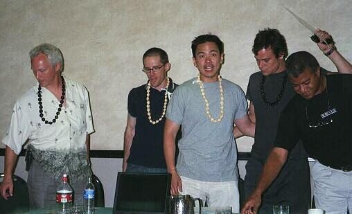 Later, as I headed down for the R&R (which none of the actors save Kristian were able to attend), I passed James, Rodney, Morgan, Joel, and Tucker in the hall. Joel stopped; his whole face lit up, and thanked me profusely for the lei. I just smiled, and said, "No, thank you." The others just smiled, nodded and kept on going…no doubt afraid I’d subject them to some other indignity!