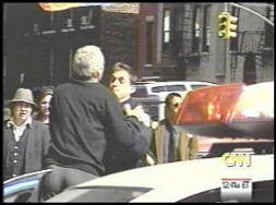 pleading to the deli owner to calm down. The deli owner has learned that his nephew was