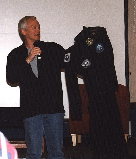Remember the flight suit? Ivan and Sasha were doing a photo session, with a pro- photographer. They were allowing fans to be photographed with Ivan in the McQueen flightsuit and needed help to organize things and make sure we didn't have too many people in one moderately small room at once. All the proceeds went to the con charity. I took the chance, in a quiet moment, of having my photo taken. Ivan did a very good 1,000-yard stare in all the pictures that I saw later that day. I can't believe that I got hugged by the McQueen flightsuit! But, I have the photo to prove it.