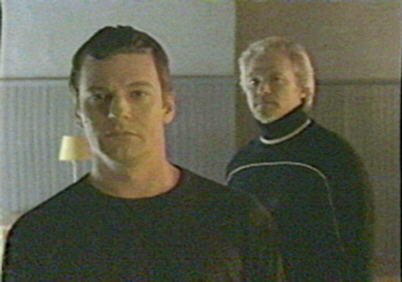 through the glass, Tom draws his gun. He sees Sloan who stares back at him. He touches the