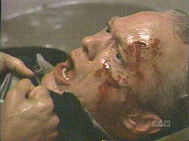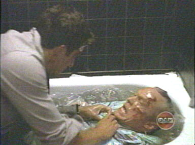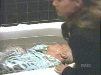 the hired gunman into submission. While dunking his head under the bath water, Frank