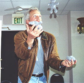 juggle them, which he did, sitting down. One of the JMDGers asked him to stand up and