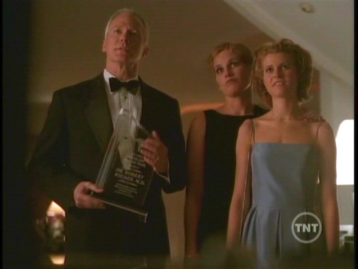 Dr. Robert Wieder, his wife Nan, daughter Lucy, and father-in-law, Dr. Irving Thalbro are arriving home from an awards banquet. Dr. Wieder has just won the San Francisco Bay Area Doctor of the Year Award for "the great wisdom, skill and compassion he exhibits in the practice of medicine." His father-in-law is invited to stay the night. Hours later, though, Robert finds his father-in-law hanging in the atrium, his throat cut, and large, bloody letters splashed across the wall, spelling "Theef."