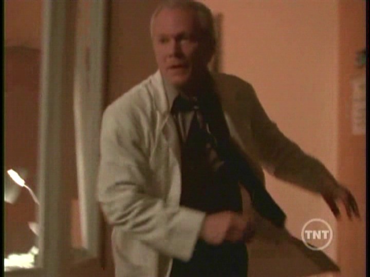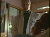 Robert remembers the crowd of bus passengers he'd triaged. The girl was dying, and he tried to make her comfortable by increasing her morphine dosage, which probably robbed her of the last twenty minutes of her life. Mr. Peattie believes she could have been saved if he had been there. When Robert returns to treating his wife, she's mysteriously burned to death in the radiation chamber during the MRI. The word "Theef" is burned into her chest.Robert, Scully and Mulder discuss the confrontation with the angry father. His daughter, treated as a Jane Doe, was named Lynette Peattie. Scully and Mulder search for her grave, and find an empty coffin. Meanwhile Mr. Peattie's landlady enters his room while he’s gone. She is looking for a poultice that Peattie had been making for her. She discovered a skeleton in his bed, and called the police. By the time Mulder arrives, Peattie has cleared out.