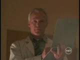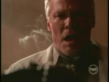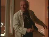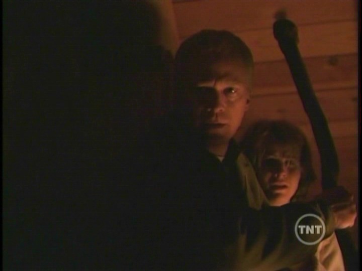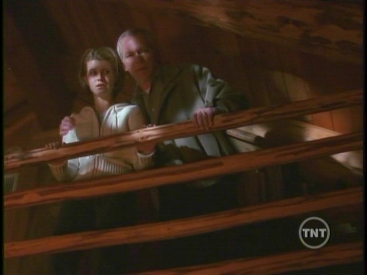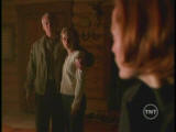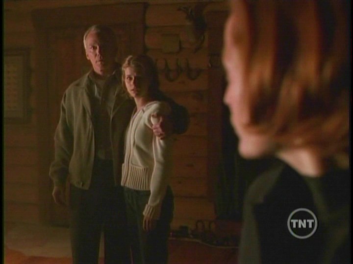 Inside the cabin Scully becomes blind. With gun drawn, she shoots at Peattie as he breaks in. He knocks her aside and heads upstairs where Robert and his daughter are sitting on the floor of the landing. Robert try’s to convince Peattie that he did everything he could for his daughter. Peattie has another cloth doll and sticks a knife into its heart. Lucy screams as Robert falls over grabbing his chest.Mulder arrives at the cabin and finds the hex doll that Peattie used on Scully. When he pulls the pins from the doll’s eyes, Scully can suddenly see. She shoots Peattie before he can kill Robert and his daughter.