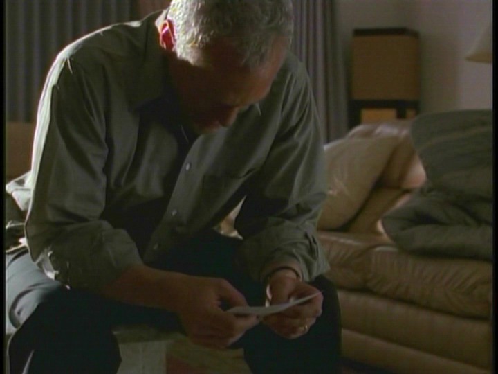 Scully takes Robert and his daughter to a cabin safe house in the mountains. Peattie follows them. Mulder calls Scully warning her that Peattie was missing and to be on the look out. Mulder tells her that he’s on his way to the cabin.Outside the cabin, Peattie breaks into Scully’s car and takes her ID photo and some hair from the seat. He makes a charm doll and sticks pins into the eyes.